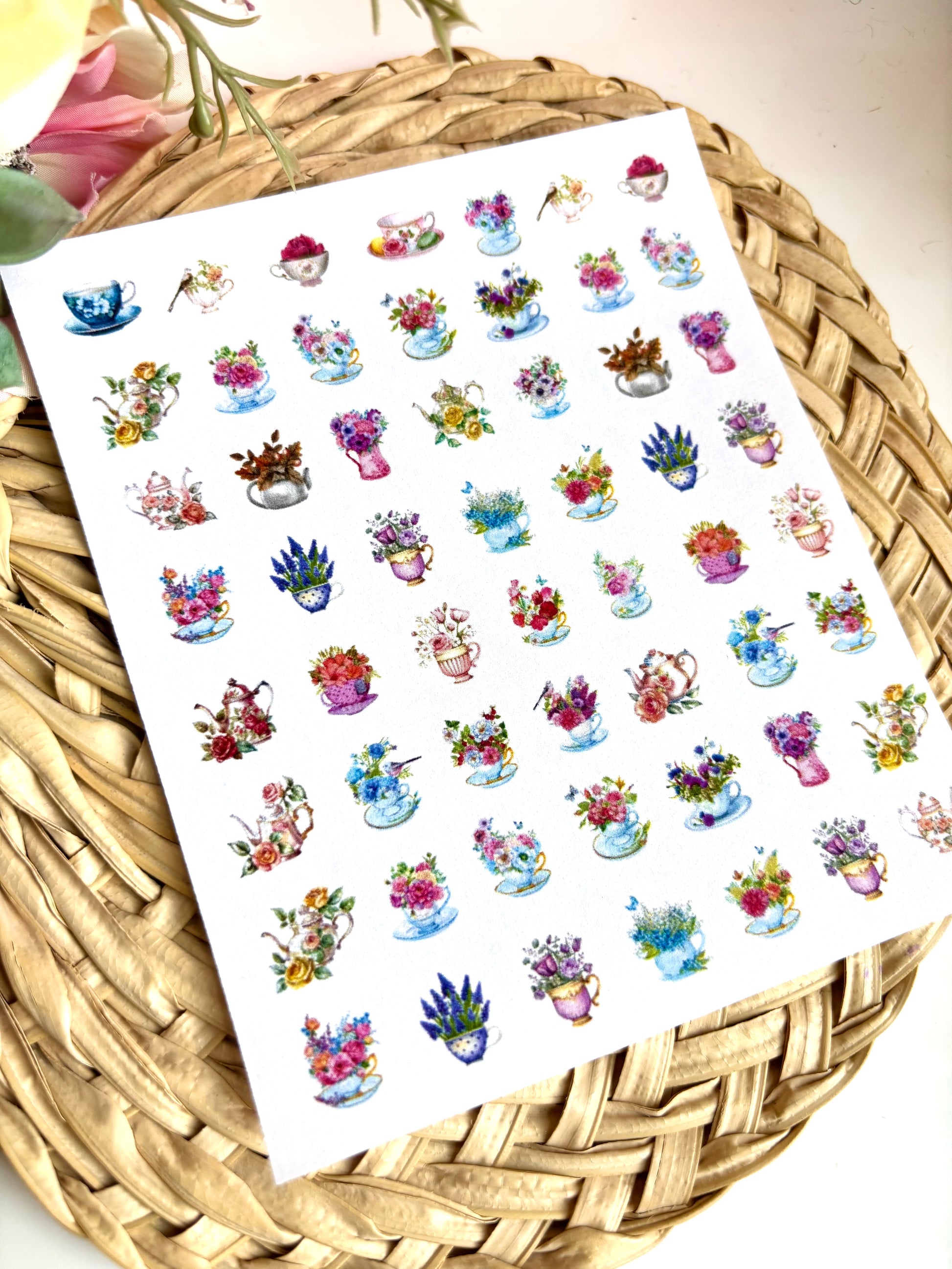 Floral Teacup Charms Transfer Paper